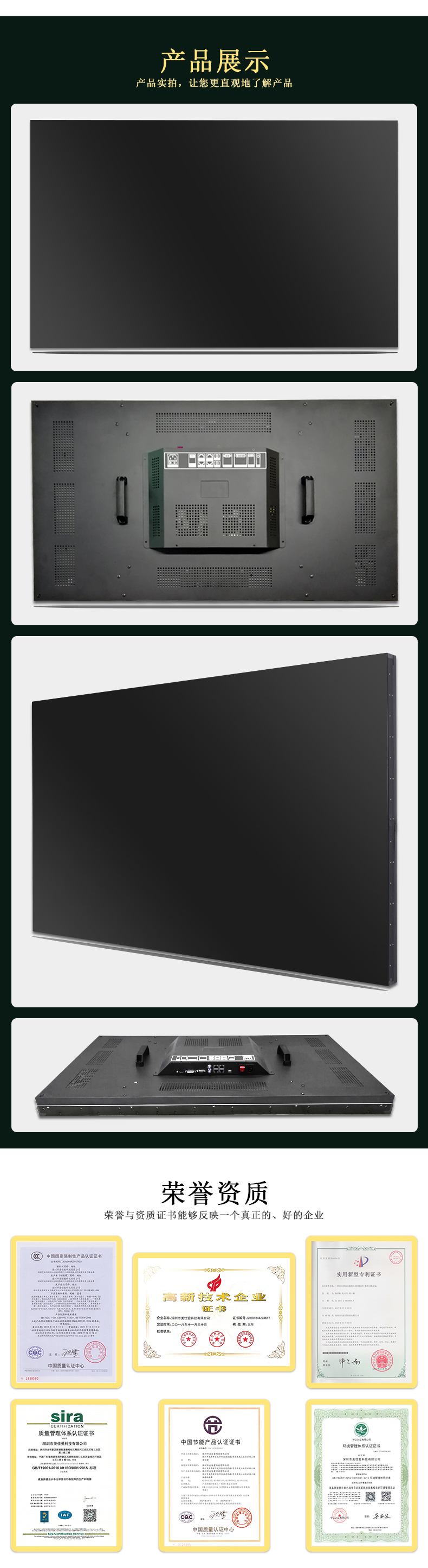 【美佳愛-4k液晶拼接屏生產廠家電話400-997-9971】京東方49寸液晶拼接屏-拼縫3.5mm產品通過ISO9001_3C_節能認證等30多項認證,主營LG/京東方/三星大屏幕電視墻,其尺寸有32寸40寸43寸46寸49寸55寸65寸75寸液晶拼接單元,也有曲面,弧形,柔性,無縫LED顯示屏,顯示器,超窄邊高清監視器,提供企業展廳展示,KTV,酒吧,會議室,視頻監控系統解決方案設計-報價-安裝施工-售后超窄邊維修等服務
