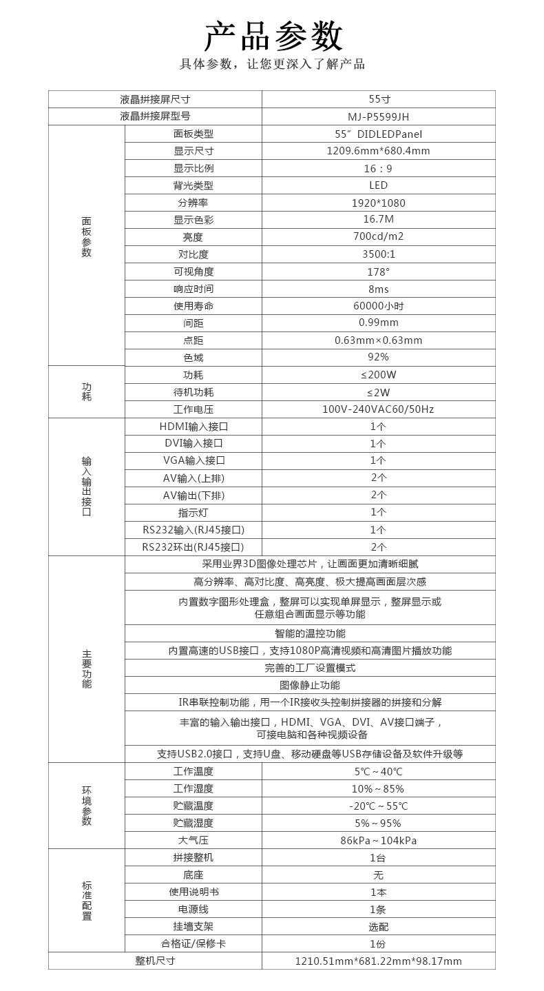 【美佳愛-4k液晶拼接屏生產廠家電話400-997-9971】京東方55寸液晶拼接屏-拼縫0.99mm-亮度700cd產品通過ISO9001_3C_節能認證等30多項認證,主營LG/京東方/三星大屏幕電視墻,其尺寸有32寸40寸43寸46寸49寸55寸65寸75寸液晶拼接單元,也有曲面,弧形,柔性,無縫LED顯示屏,顯示器,超窄邊高清監視器,提供企業展廳展示,KTV,酒吧,會議室,視頻監控系統解決方案設計-報價-安裝施工-售后超窄邊維修等服務