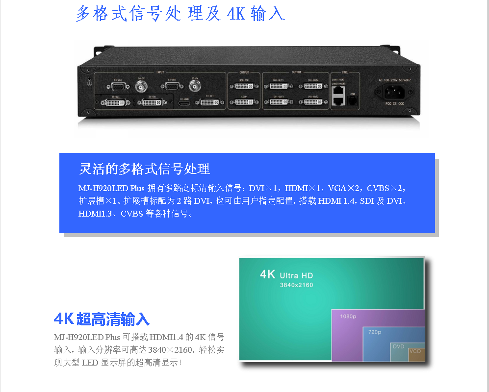 【深圳市美佳愛-LED視頻處理器MJ-H920LED,拼接處理器生產(chǎn)廠家電話400-997-9971】專業(yè)提供LED視頻處理器,外置拼接處理器,視頻服務器,云處理器,液晶大屏幕處理器,視頻分配器,網(wǎng)絡高清數(shù)字解碼矩陣主機,監(jiān)控音視頻矩陣切換器,DVI/SDI/RGB/HDMI/VGA混合矩陣,高品質(zhì),穩(wěn)定性強