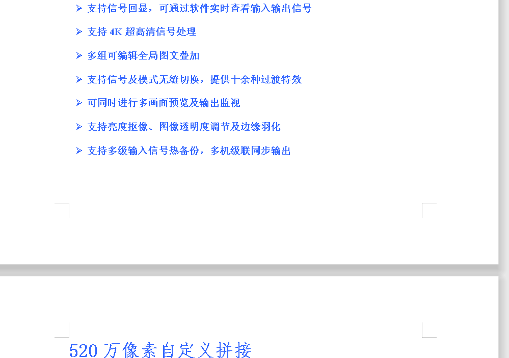 拼接輸出 | ·拼接輸出的分辨率最大可達520萬像素,如:15360×330@60Hz(橫向拼接)或670×7680@60Hz(縱向拼接)或3072×1680@60Hz(田字型拼接),在這些范圍內(nèi)輸出大小可任意調(diào)節(jié) ·支持點對點拼接,多機可以級聯(lián)完成更大分辨率的拼接輸出 |