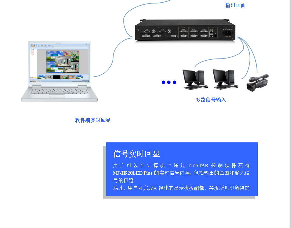 畫面回顯 | ·使用KYSTAR控制軟件可以在計算機上實時獲取MJ-H920LED Plus的信號畫面,包括輸入信號以及輸出信號 |