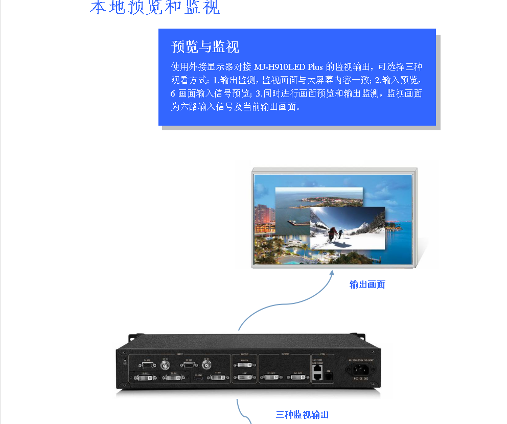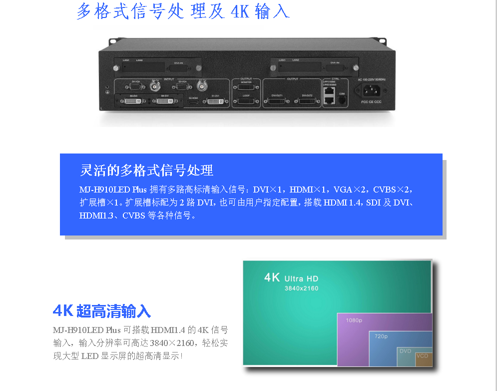 【深圳市美佳愛-LED視頻處理器MJ-H910LED,拼接處理器生產廠家電話400-997-9971】專業提供LED視頻處理器,外置拼接處理器,視頻服務器,云處理器,液晶大屏幕處理器,視頻分配器,網絡高清數字解碼矩陣主機,監控音視頻矩陣切換器,DVI/SDI/RGB/HDMI/VGA混合矩陣,高品質,穩定性強