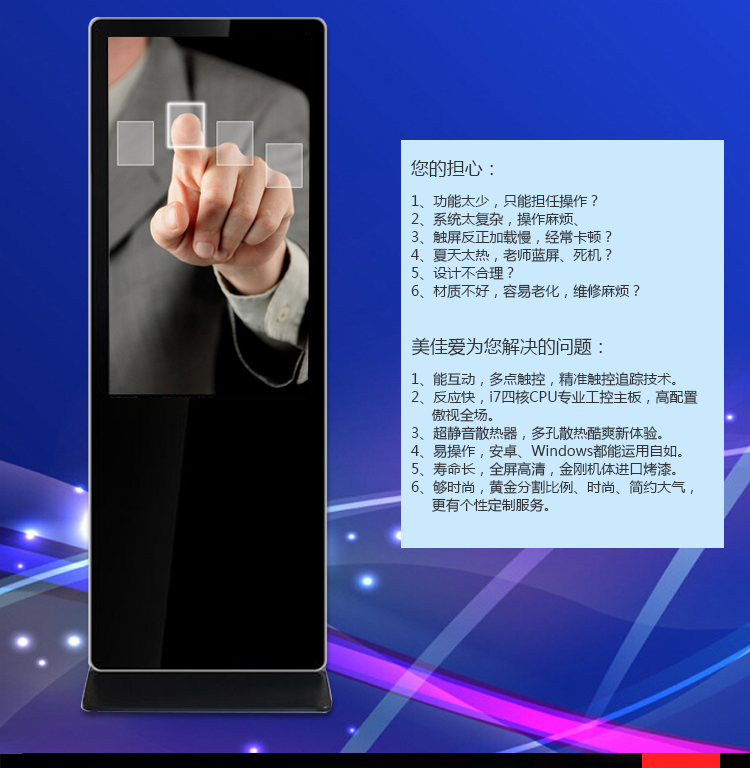 【深圳市美佳愛-液晶廣告機,觸摸一體機生產廠家電話400-997-9971】55寸紅外觸摸一體機(電腦/立式)通過ISO9001_3C認證,主營戶外立式/壁掛雙面廣告機,單機版/安卓網絡廣告機 豎屏樓宇電梯廣告機,長條型屏,多點紅外/電容式觸摸屏一體機,觸控查詢一體機,其他尺寸18.5寸21寸24寸27寸32寸40寸43寸46寸49寸55寸65寸75寸86寸98寸100寸多功能多媒體教學會議一體機,工業級工控電腦觸摸顯示器,大尺寸觸摸屏查詢系統,商顯平板電腦電視,提供報價價格,安裝施工,售后維修等