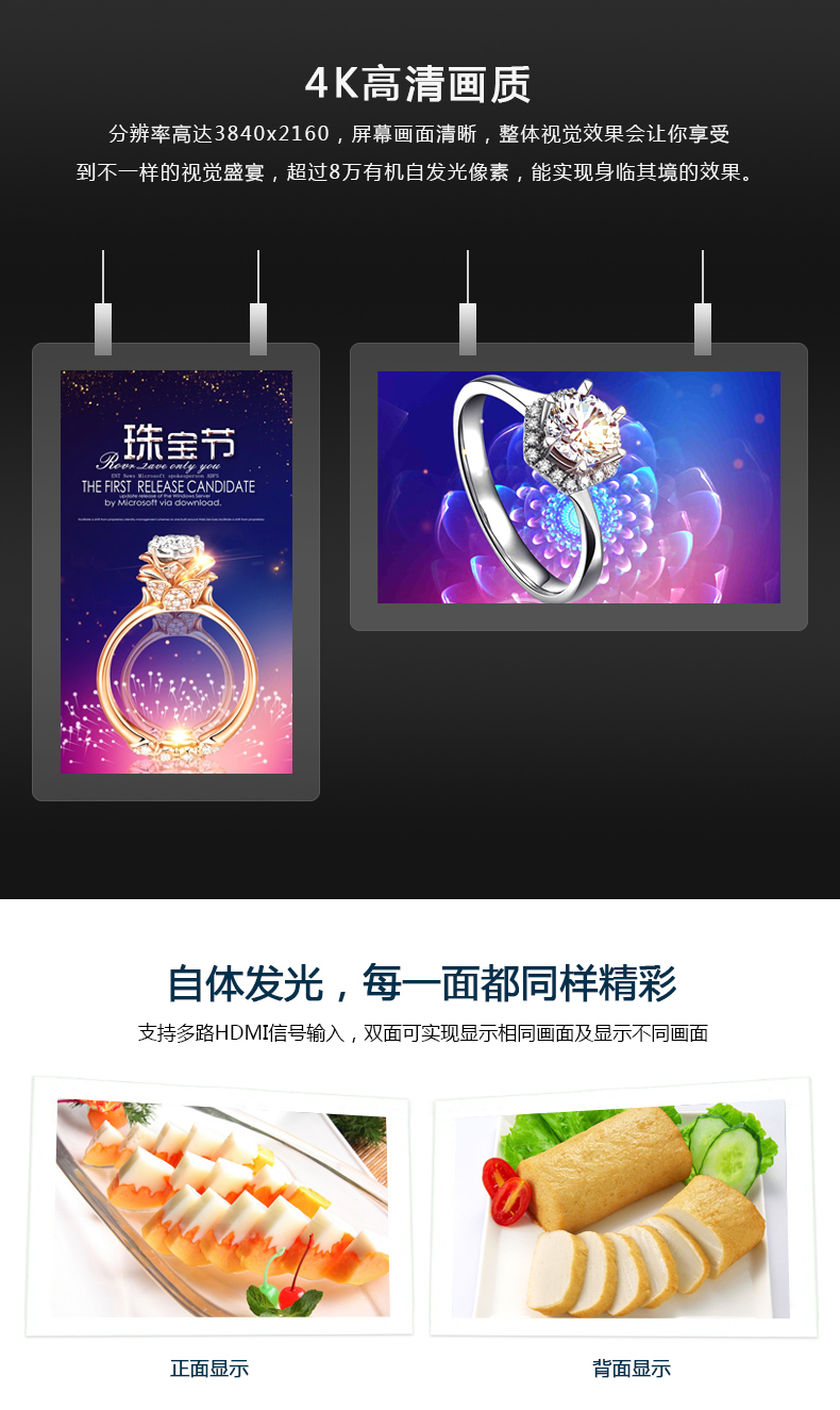 【深圳市美佳愛-液晶廣告機,觸摸一體機生產廠家電話400-997-9971】43寸超薄雙面吊掛OLED廣告機 通過ISO9001_3C認證,主營多點紅外/電容式觸摸屏一體機,觸控查詢一體機,其他尺寸18.5寸21寸24寸27寸32寸40寸43寸46寸49寸55寸65寸75寸86寸98寸100寸多功能多媒體教學會議一體機,戶外立式/壁掛雙面廣告機,單機版/安卓網絡廣告機 豎屏樓宇電梯廣告機,長條型屏,工業(yè)級工控電腦觸摸顯示器,大尺寸觸摸屏查詢系統(tǒng),商顯平板電腦電視,提供報價價格,安裝施工,售后維修等