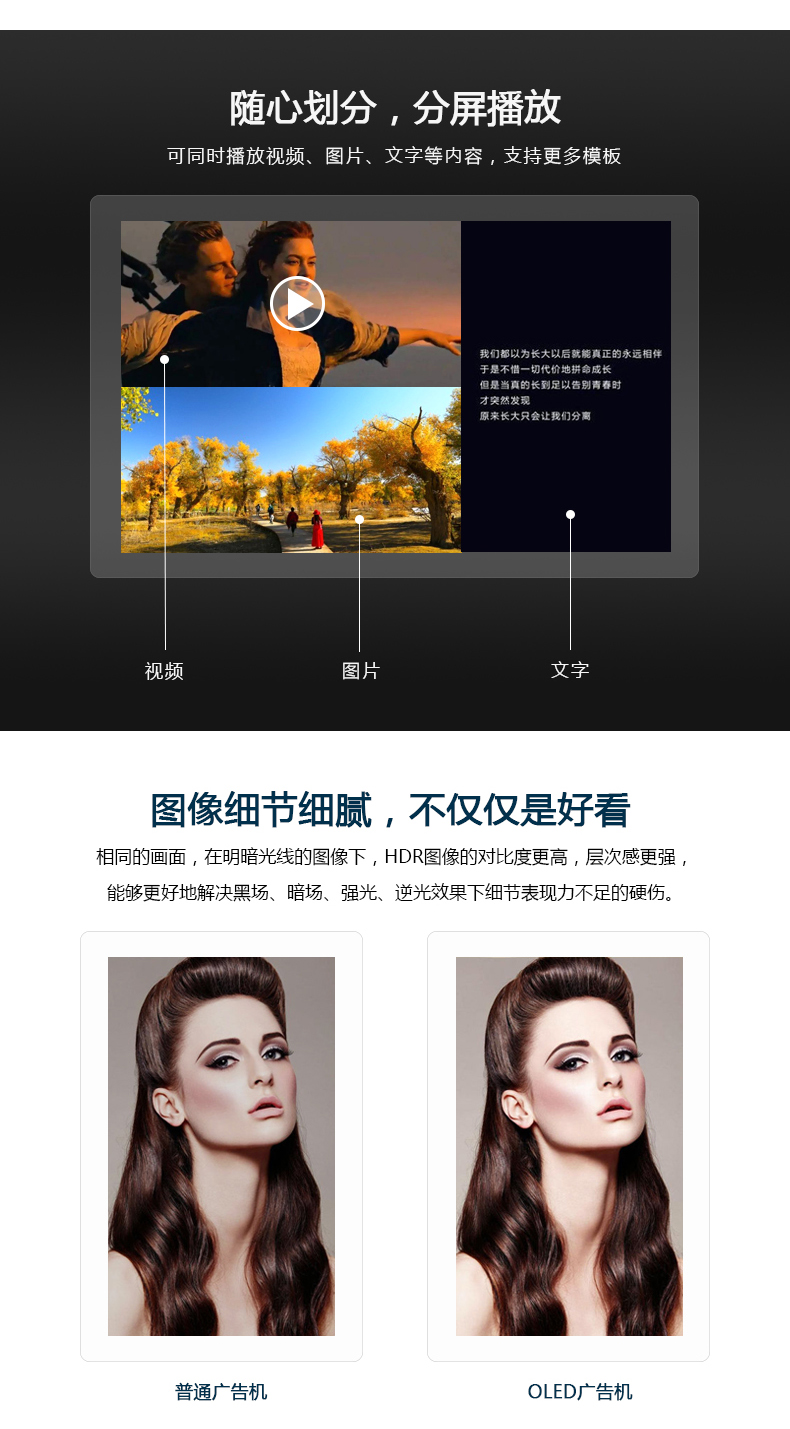 【深圳市美佳愛-液晶廣告機,觸摸一體機生產(chǎn)廠家電話400-997-9971】65寸超薄雙面吊掛OLED廣告機ISO9001_3C認(rèn)證,主營多點紅外/電容式觸摸屏一體機,觸控查詢一體機,其他尺寸18.5寸21寸24寸27寸32寸40寸43寸46寸49寸55寸65寸75寸86寸98寸100寸多功能多媒體教學(xué)會議一體機,戶外立式/壁掛雙面廣告機,單機版/安卓網(wǎng)絡(luò)廣告機 豎屏樓宇電梯廣告機,長條型屏,工業(yè)級工控電腦觸摸顯示器,大尺寸觸摸屏查詢系統(tǒng),商顯平板電腦電視,提供報價價格,安裝施工,售后維修等