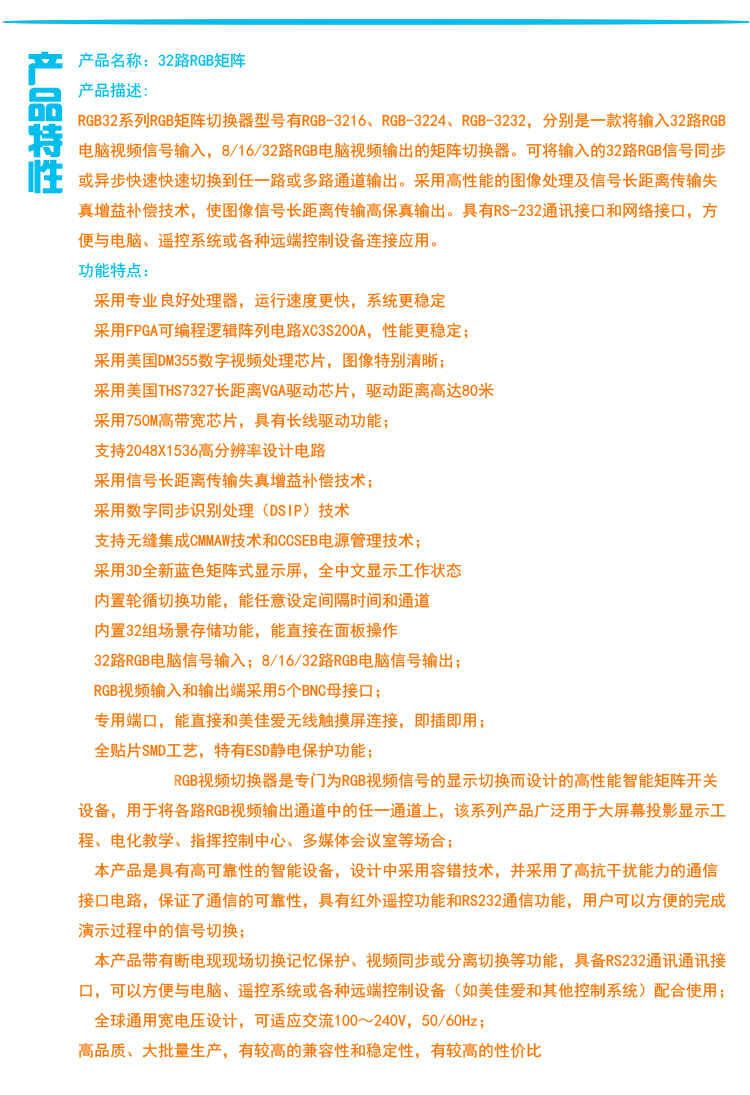 【深圳市美佳愛-矩陣切換器,視頻拼接處理器生產廠家電話400-997-9971】RGB矩陣切換器通過ISO9001_3C認證,型號規格有4進,8進,12進,16進,24進,32進,48進,64進,128路輸入,4出,8出,12出,16出,24出,32出,48出,64出,128路輸出,專業提供LED視頻處理器,監控音視頻矩陣切換器,DVI/SDI/RGB/HDMI/VGA混合矩陣,外置拼接處理器,視頻服務器,云處理器,液晶大屏幕處理器,視頻分配器,網絡高清數字解碼矩陣主機生產廠家,高品質,穩定性強的產品和服