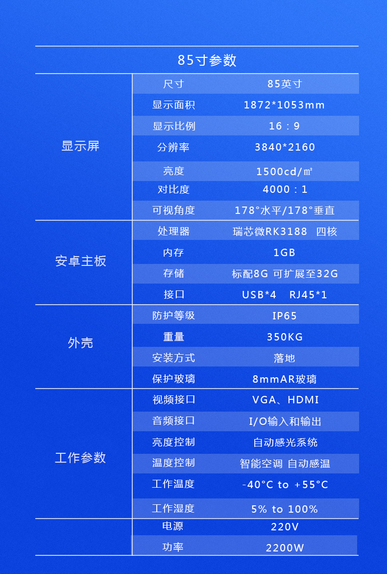 1.4 高透玻璃:整機(jī)屏前保護(hù)玻璃采用6mm 高透鋼化玻璃或AR防眩光鋼化玻璃,透光率≥97%,高透光 。