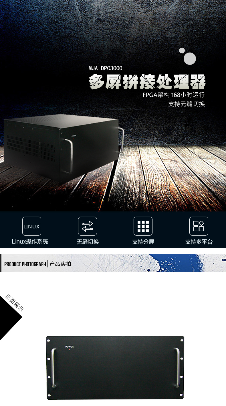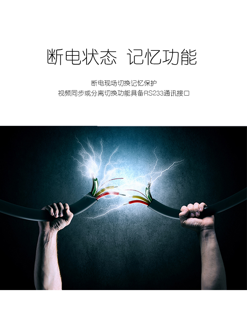 - 支持無縫切換,處理器內部集成高清信號處理機制,保證信號切換時無延時、無藍屏、無黑屏等中間過渡狀態。