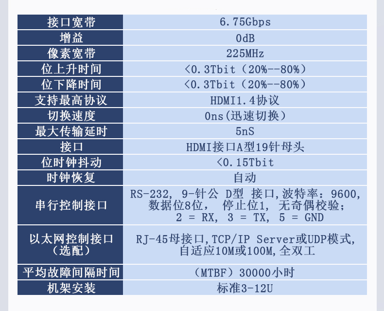 13.支持RS-232、紅外(選配)、網(wǎng)口(選配)控制信號(hào)切換功能;